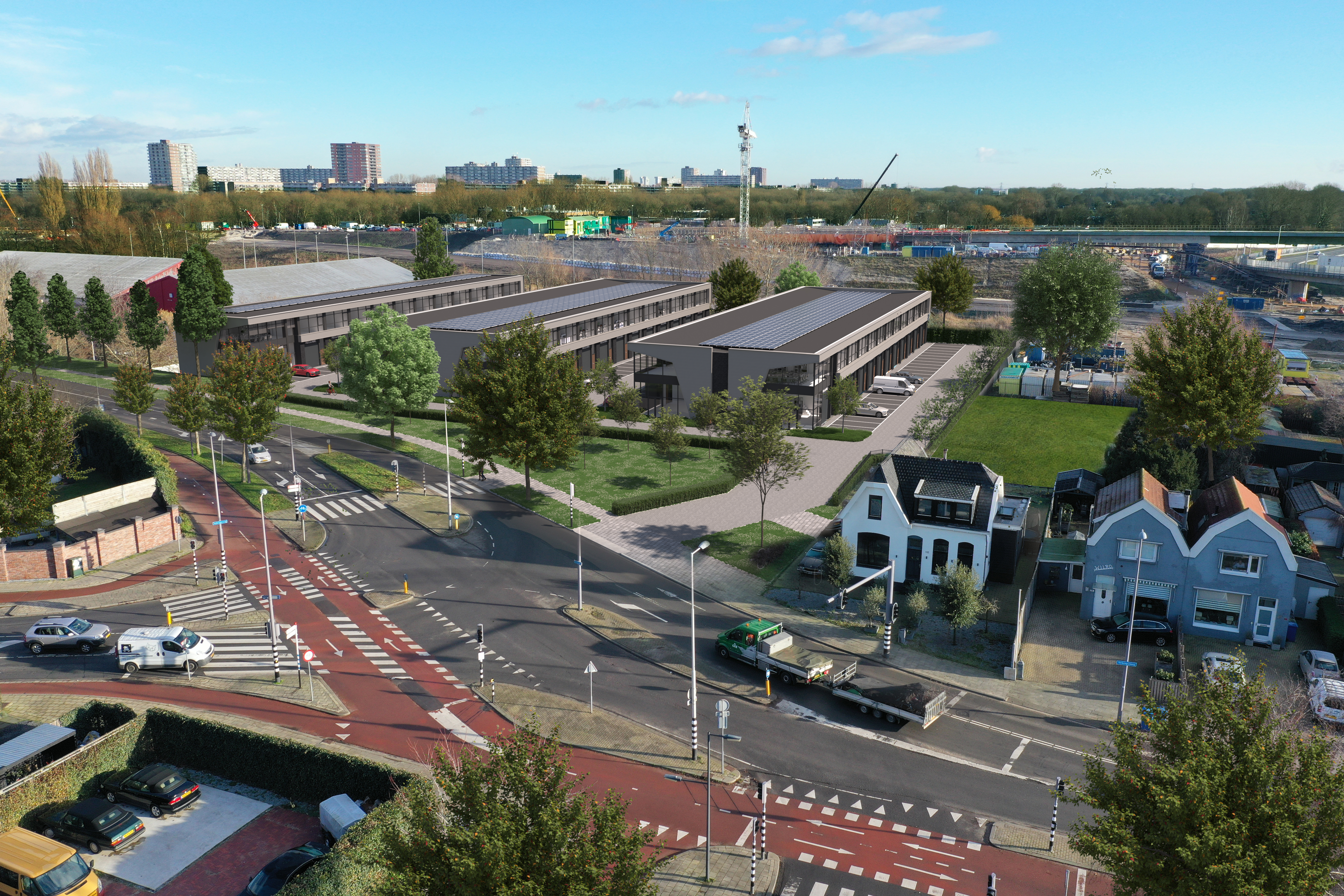 Project ZOOM verrijst op een uitstekende zichtlocatie aan de Terbregseweg 111 in Rotterdam, op bedrijventerrein Zestienhoven-Oost. Een strategische plek met directe verbindingen naar uitvalswegen en het centrum van de stad.