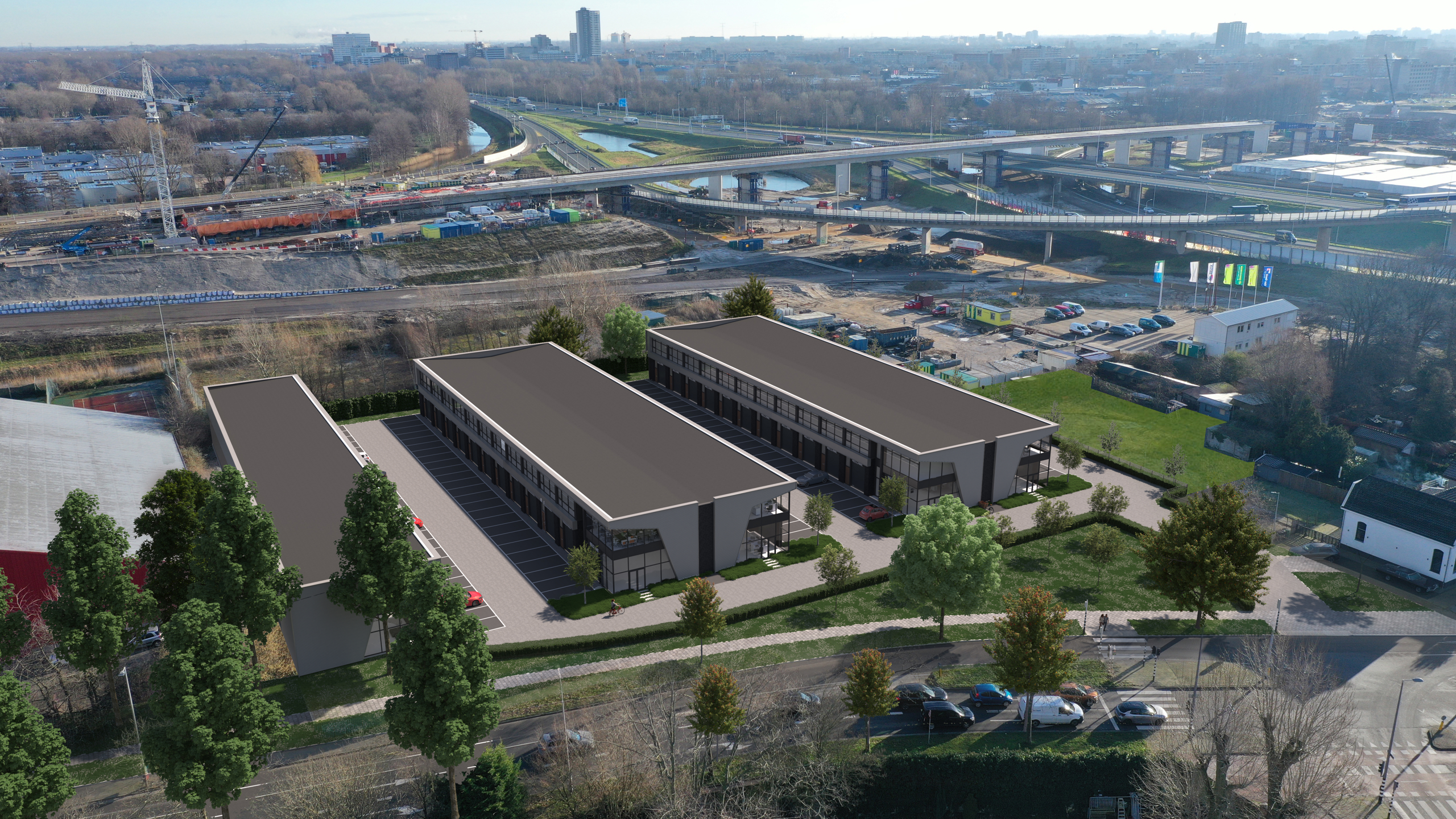 Project ZOOM bestaat uit 60 hoogwaardige bedrijfsunits van circa 55 m² tot 115 m² op een zichtlocatie aan de Terbregseweg 111 in Rotterdam, op bedrijventerrein Zestienhoven-Oost. Elke unit is representatief en functioneel en hoogwaardig afgewerkt.