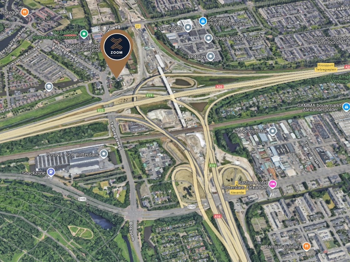 Project ZOOM wordt gerealiseerd op een uitstekend bereikbare zichtlocatie aan de Terbregseweg 111 in Rotterdam, op bedrijventerrein Zestienhoven-Oost. De omgeving biedt bovendien representativiteit met nabijheid van groen.